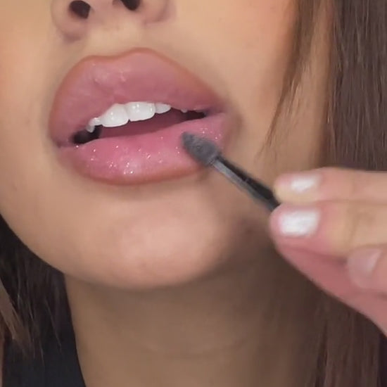 3. Sobald der Gloss klarer wird, verwenden Sie den Applikator um den Glitzer aufzutragen. Sanft auf die Lippen tupfen, um den Gloss Bond vollständig abzudecken.